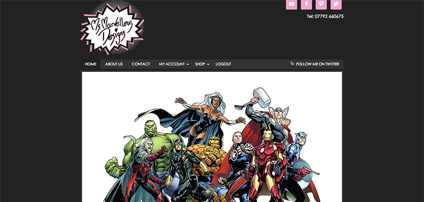 Ms.Marvellous Designs offer a unique service to a niche clientele of Marvel and Superhero comic fans. Using a form of decoupage, they design and cover pieces clothing and household items with cut out sections from original comic books. This is then varnished until it forms a hardwearing protective outer shell. The result is stunningly unique.
